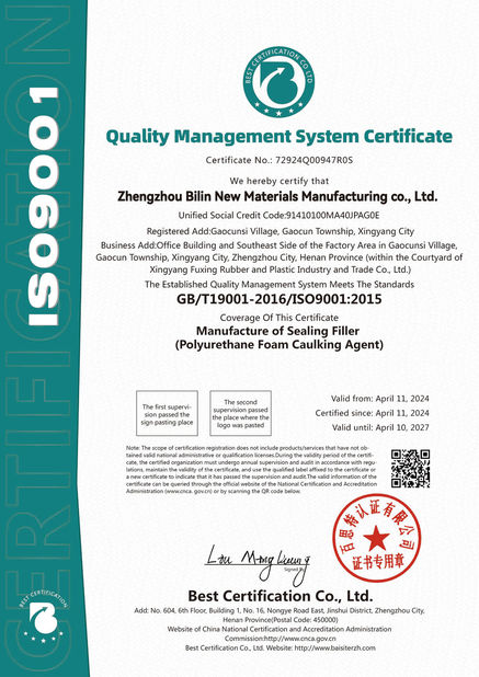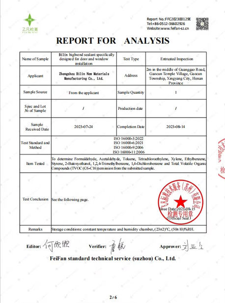 बिलिन उत्पाद अमेरिकी एएसटीएम सी 920, यूरोपीय सीई, जर्मन डीआईएन 4102 और फ्रेंच ए + जैसे मानकों का अनुपालन करते हैं, और प्रदर्शन, सुरक्षा,और पर्यावरण संरक्षण.